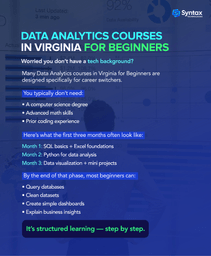 In this 2026 career guide, you’ll learn what’s fueling the demand, how to evaluate a data analytics course near me, where to find credible programs across the state, and how beginners can confidently start with data analytics courses in Virginia for beginners