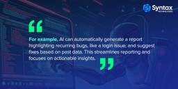 - AI can even offer recommendations for how to fix specific bugs or improve the software based on the test results.